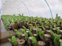 ハウスで育てているタラノメ