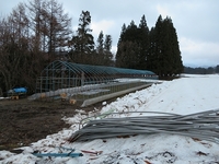 除雪し、雪で潰されたビニールハウスを撤去し、ようやく骨組みまで出来ました。