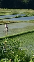 田植えに7日間掛かりましたので、今日は、最初に植えた田んぼから除草作業スタートです。