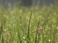穂先に登った露が朝日に照らされて輝いています。
