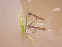 この田んぼの除草作業中、私の周りを飛び回ってくれたフレンドリーなトンボたちでした。