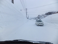 軽トラの中から撮った写真ですが、向かってくる車などと、道路の横の雪の壁を見比べてみて下さい。