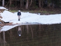 日陰で吹き溜まりになっているから消えにくいらしいのですが、もう5月ですよ〜。