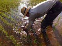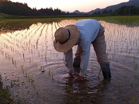 農場主は、田植えが終わったと同時に、田んぼの草取りに一日中励んでいます。【嫁】