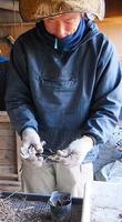 それを農場主母と私が、太めと細めにだいたい分けて、苗箱に並べていきます。