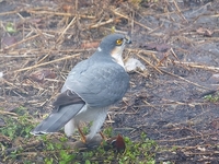 私から逃げたいはずですが、すずめを捕まえているため、飛び立つタイミングを計っているようでした。お陰で、じっくり観察。偶然持っていたカメラで撮影出来ました。