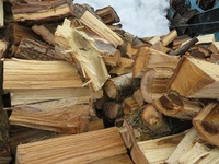 割った薪は、雪が解けてから積んで乾燥させておきます。