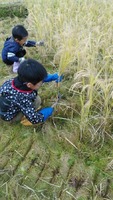 昨日、保育園帰りの息子たちを田んぼに連れて行ったところ、稲を刈るお手伝いをしてくれました。