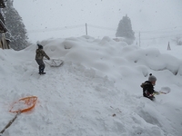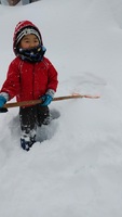 二人とも雪かきが大好きで、そりに乗って遊ぼうといっても、雪かきがしたいと言って雪かきをします。
