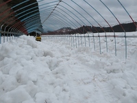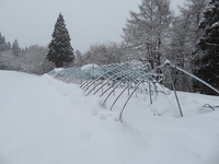 二度目は少し湿った雪だったので、それが、骨組みだけのパイプハウスにも積もったようです。