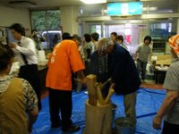 6月17日震災から100日宮城県の避難所にて白毛餅もちつき