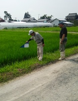 宮城県現地確認責任者と共に圃場の確認や生育状況の確認を