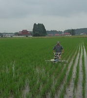 田植え機の後ろ部分を除草機械に交換して使用する除草機です。