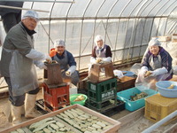 通常は外でしている作業ですが、この日は風が冷たかったのでビニールハウスの