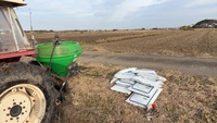 来年は代かき機を調達しないと。次に壊れそうなのが肥料散布機とフォークリフト。あちこち不調をだましだまし使っているトラクター。