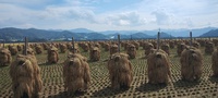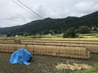 毎年、稲木を建て天日干しのお米を収穫していましたが、台風12号と15号で稲木が倒れ稲刈が遅くなるのでコンバインで稲刈しました。「天日干し」でないお米を販売するのは初めてです。これが普通なのでしょうが私にとっては一大事です。野菜に使う稲わらも取れませんでした。でも、稲木に稲を掛ける前だったのでお米は大丈夫でしたが、とても残念でした。来年は、どんな年になるか分かりませんが今までのような稲木を建て「天日干し」を食べて頂けるように頑張ります。今年は普通のお米でよろしくお願いします。