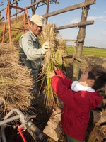 越後平野のど真ん中、北西に標高634mの弥彦山、東に守門山、広々とした田園の中で大河「信濃川}の水と自然の力をかりて稲を育てています。秋には昔ながらの「はざ」の風情を楽しんでいます。はざ架け自然乾燥の風味も味わってください。