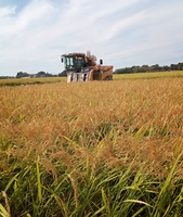 今年は雨が降らず猛暑のため、例年より早く稲刈りスタートとなりました。