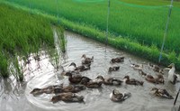 田植え後約二か月が経とうとしていますが、カモも稲の成長に合わせるように大きくなっています。