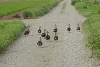 田んぼの水回りをしていたら、野生のカモの親子に遭遇しました。