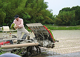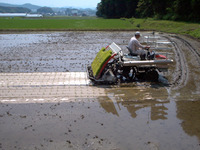 紙マルチという特殊紙を使った田植えは、このあたりではかなり珍しく、