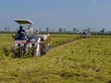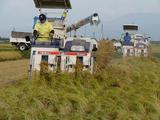 今年は圃場によって熟期が特別異なったため、適期になった圃場から、二台のコンバインで一気に刈り取ります。