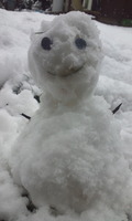 今冬一番の積もり具合でちょっと嬉しくなってしまい、「冷たーい!」なんて悲鳴を上げながら、雪だるまを作ってしまいました^-^
