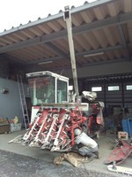 それから今日は、稲を刈る「コンバイン」のメンテナンスと掃除。