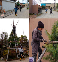 | 庭木の冬囲いをはずす |