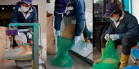 種もみの温湯消毒(おんとうしょうどく)の準備をしています。