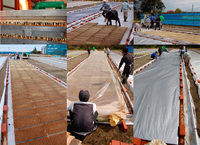 二つ折りの状態でロールになっているので、広げながら発芽苗を覆っていきます。