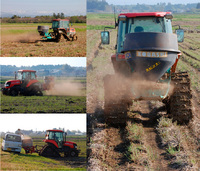 トラクタの作業アタッチメントを、代かき用のハローに付け替えて行ないます。