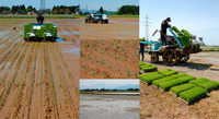 | 二台体制で田植え |