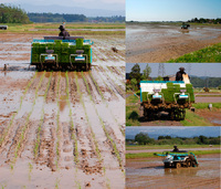 写真は、一枚の田んぼを二台で植えているところです。