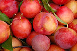 「こんなに生ったのは初めてだわ」と、たくさん獲れたスモモやプラム。