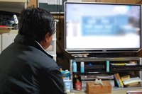 番組を見る社長内山義夫(著作権の都合上、テレビの画面内はぼかしています)