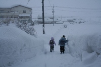 やっと少し落ち着いてきましたが、今年は本当に雪がたくさん降りました。小学校も大雪警報で2回ほど学校が休み。しかしこんなに雪が積もっていても、がんばって学校に行っています。