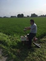 実際農業経験ゼロの私が田んぼに突っ込んでいったところ、田植え機の車輪が通った深い溝にハマり(田植え機の車輪が通った溝はとりわけ深くぬかるみ、田面ライダー使用はご法度でした。。。)、抜け出そうとエンジンをmax吹かしてしまい、車輪に泥がこびりつき立ち往生。。