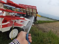 田植えの終わった後の機械は泥でいっぱいなので、掃除が大変!