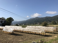 | 27年度産コシヒカリのはざかけ作業の様子 |