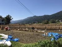 ハザ掛けを終えて雨除けのビニールをかけました。この時期ここ飯山は雨が多いので、手間になりますが乾きやすくします。でも朝は気温が低いので露が付きなかなか乾きません。