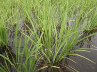田植え前日に二回目の代かきして生えた雑草の芽を退治、そして田植えをします。