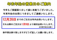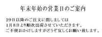 29日以降のご注文に関しましては翌年1月8日より順次出荷いたします。