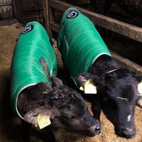 子牛は皮下脂肪が少なく病気に罹患しやすいので、真冬は防寒ジャケットを着せてあげます。