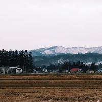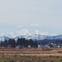 雪に覆われた雄大な飯豊山を遠くに望みます。飯豊山は初夏まで山頂に雪が残り、置賜を象徴するその美しい佇まいにいつも癒やされます。