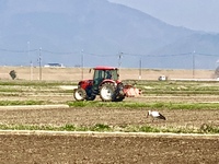 これからは、コウノトリさんがトラクターの周りをうろうろします。