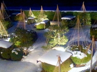 忘年会で、先日雪の城崎温泉にいきました。冬支度した箱庭がきれいでした。