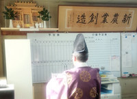 | 事務所に新しい神棚−宮司さん |