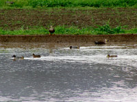 | 田植え前の田んぼでカモカモ水泳練習中! |