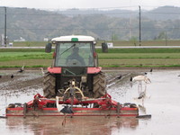| コウノトリといっしょにしろかき中 |